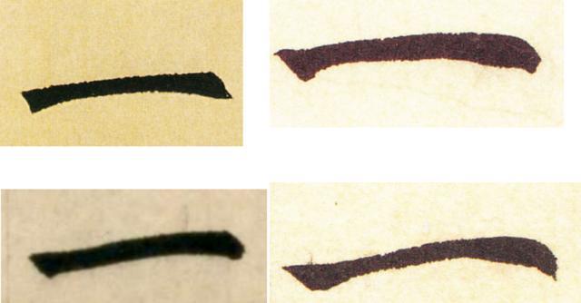 再比如赵孟頫的四个“一”,虽无一相同,但都遵循“下按—横行—停顿—收笔”的基本规律。掌握这一规律后,笔法自然稳定,即便每次写出来略有差异,也只是正常书写的结果。