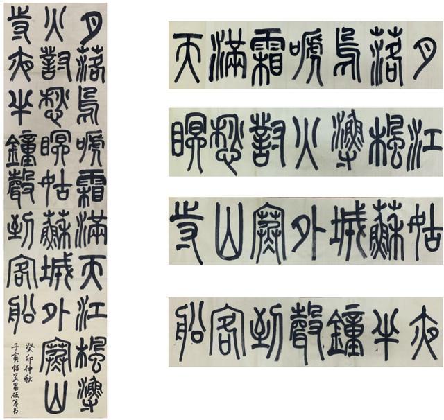 他曾在教学的一年内,让学生依次接触这五种书体。比如有学生从篆书入手,两周左右就能写出“月落乌啼霜满天”,这个时候便要求他注意落款、注意盖章,注意保持一篇作品的完整性。