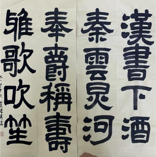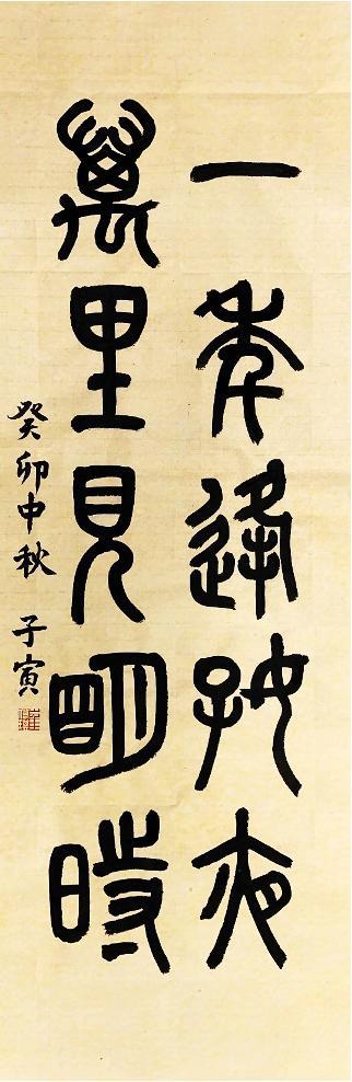 等到第三或第四个星期,他终于写出了一幅作品——“一年逢好夜,万里见明时”。到了第二个月,方老师就让这位同学开始学隶书。由于其用笔与篆书相通,仅需一两周即可掌握基本笔法。