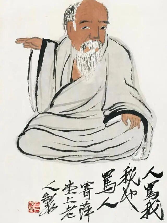 左:齐白石《人骂我,我也骂人》,北京画院藏;右:熊秉明雕塑作品《鲁迅》。