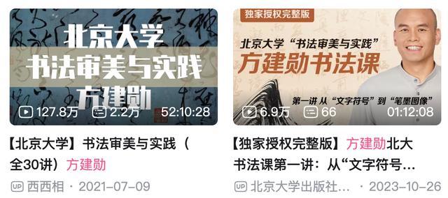 正因如此,北大方建勋老师的书法课,在校内常常一座难求;课程视频在B站播放量破百万,吸引了大量“云学生”。